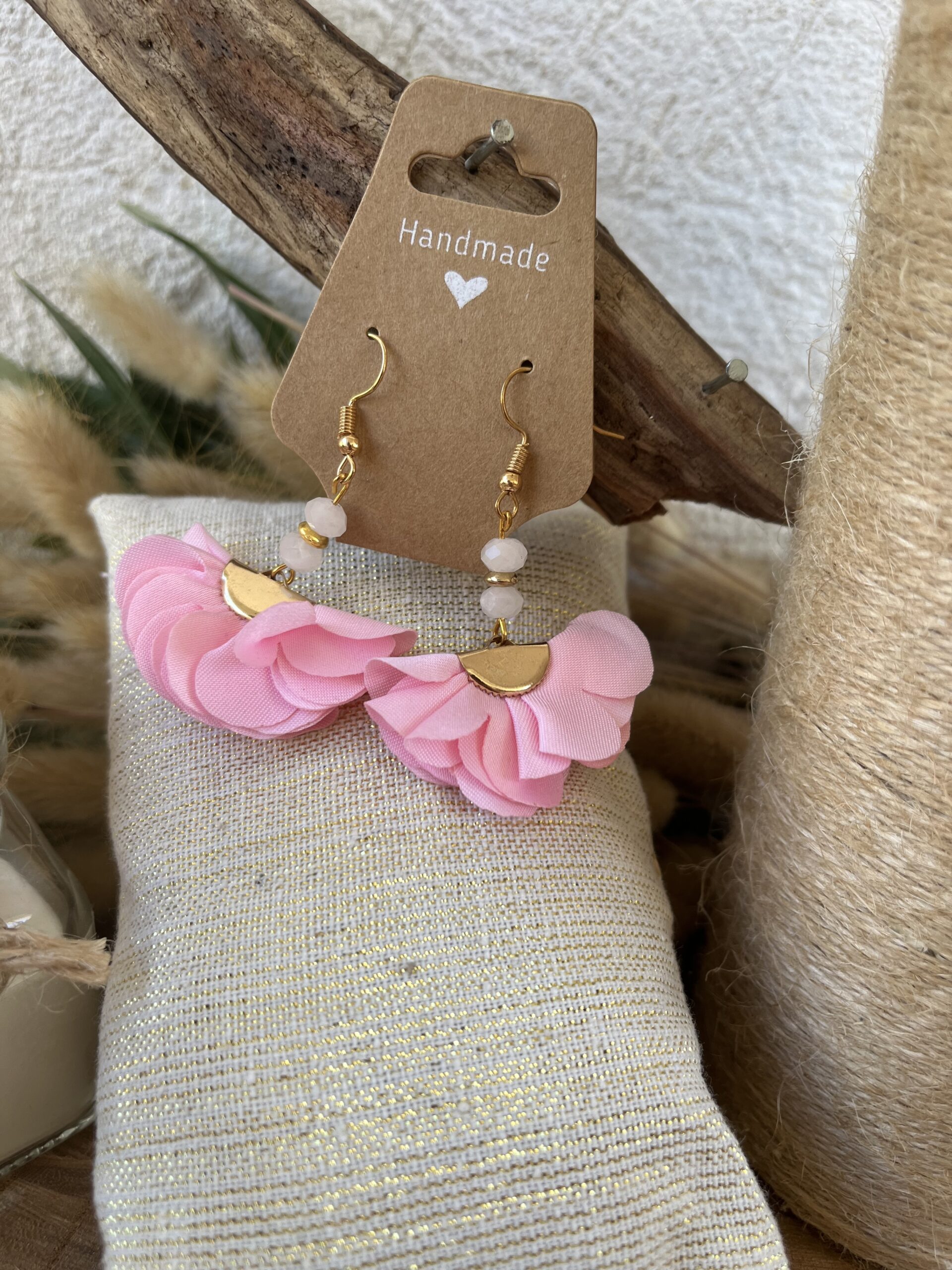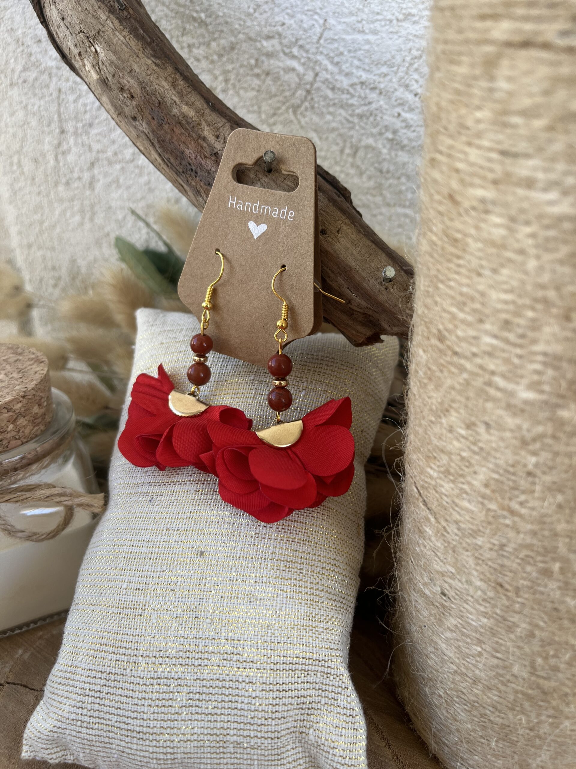 Boucles d’oreilles pendantes en Nacre, Jaspe Rouge ou Opale Rose en perles 6mm avec breloque en acier inoxydable finition doré.
