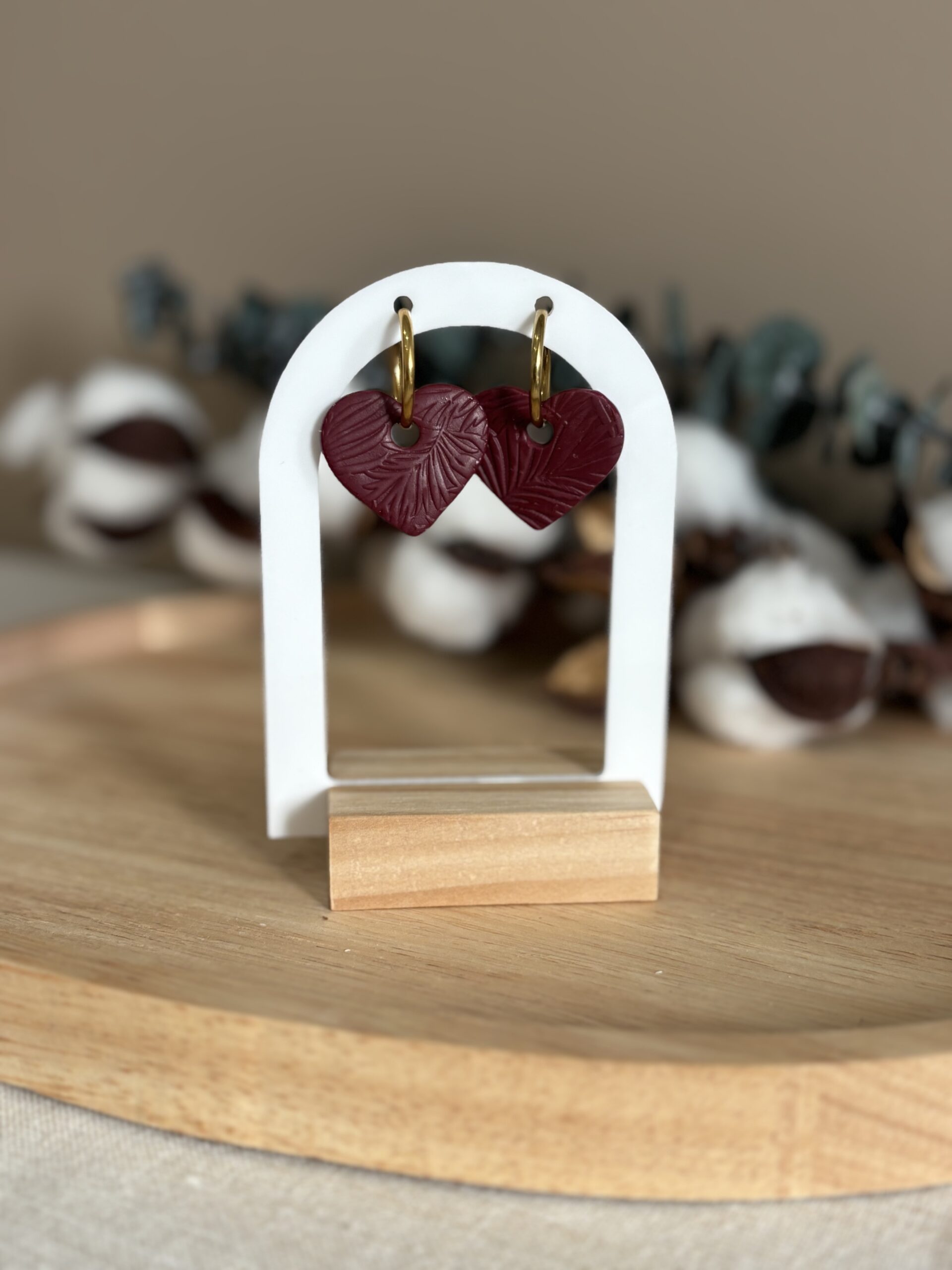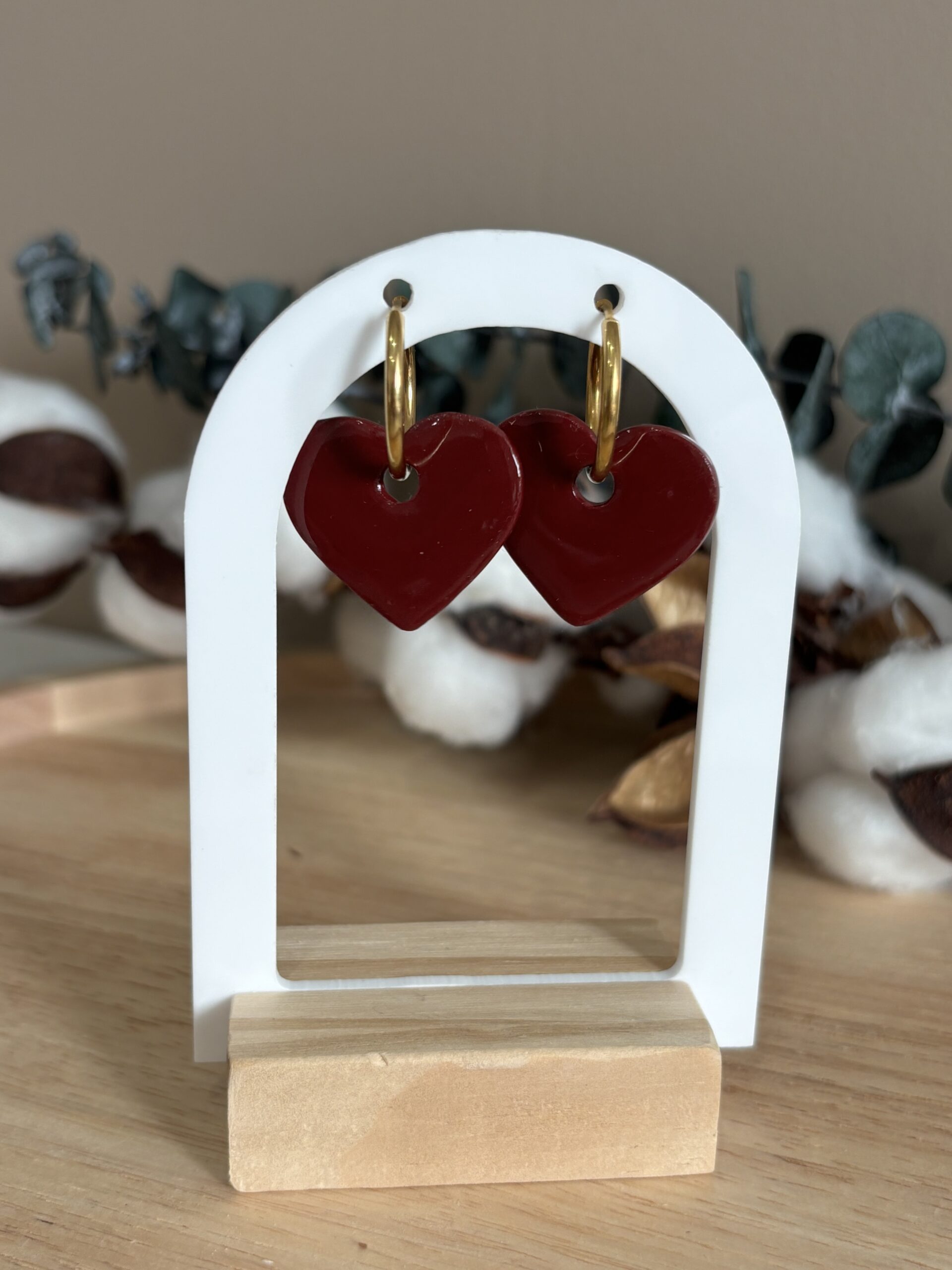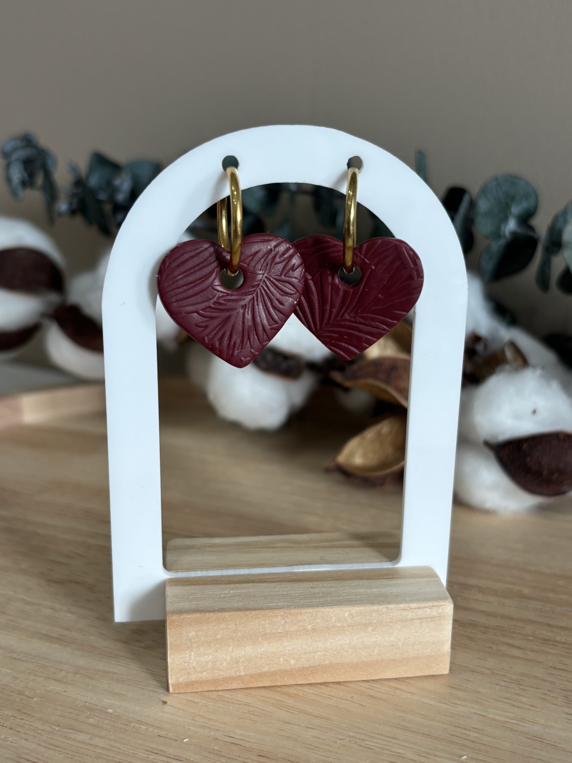 Apportez une touche d’éclat et de fantaisie à vos tenues avec nos boucles d’oreilles pampilles Améa en forme de cœur réversible un côté mat avec motif et un côté en résine .