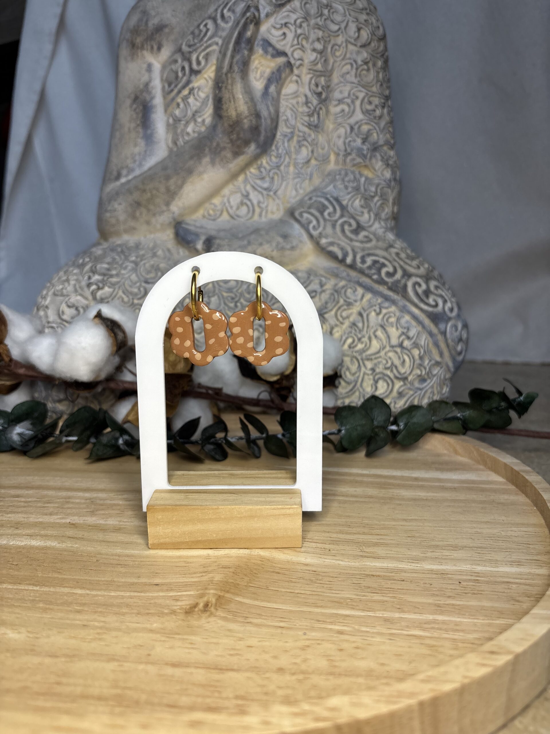 Apportez une touche d’éclat et de fantaisie à vos tenues avec nos boucles d’oreilles pampilles Anaya marron à pois beige.