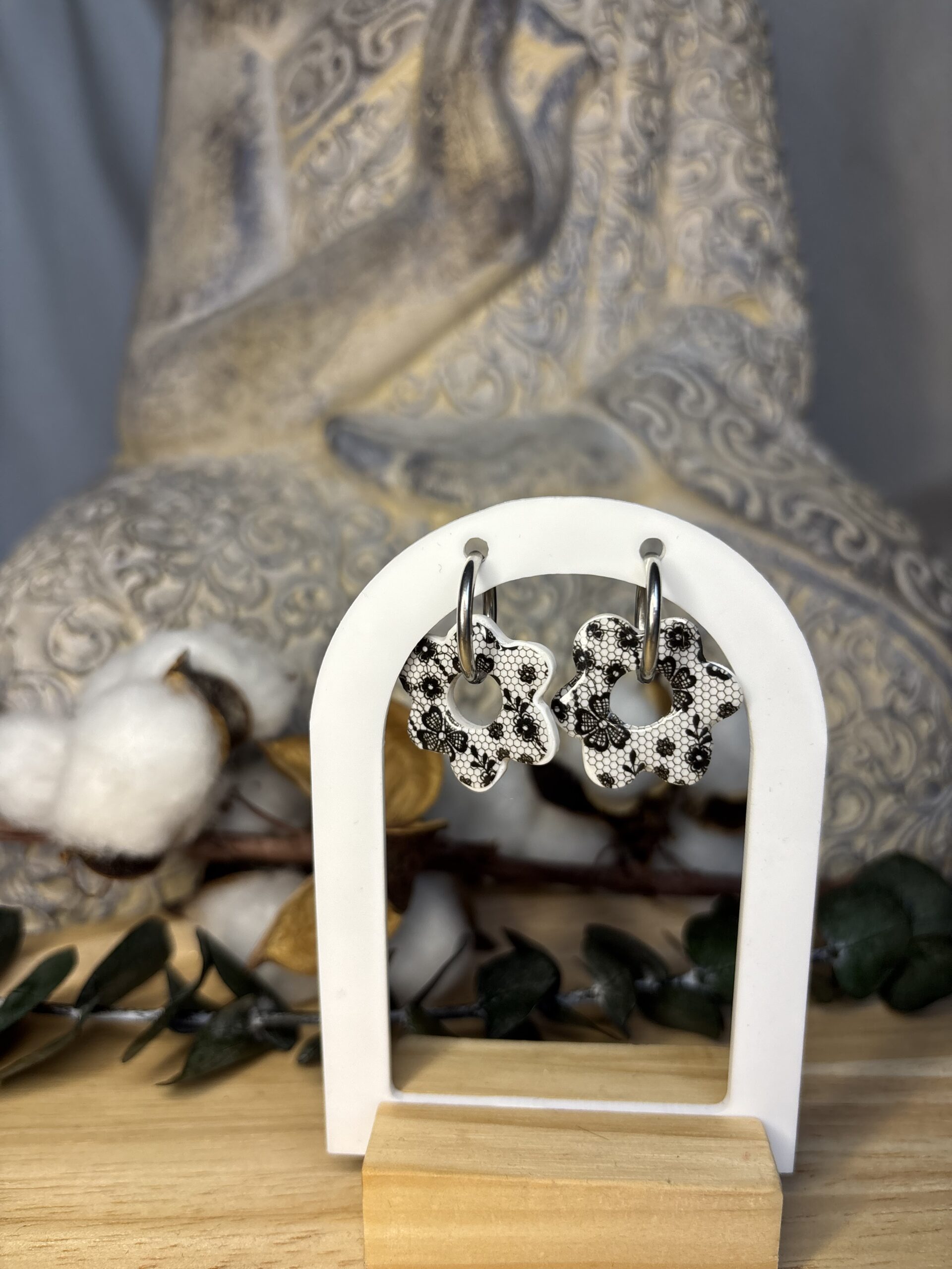 Apportez une touche d’éclat et de fantaisie à vos tenues avec nos boucles d’oreilles pampilles Isya en forme de fleur effet dentelle.