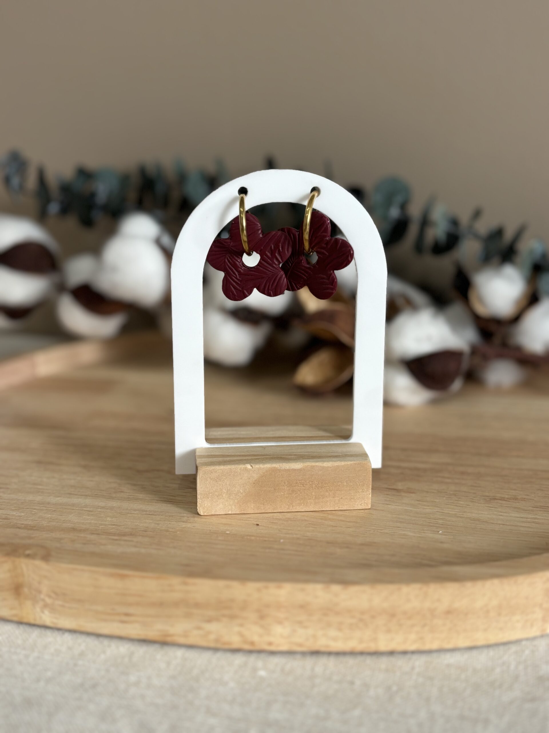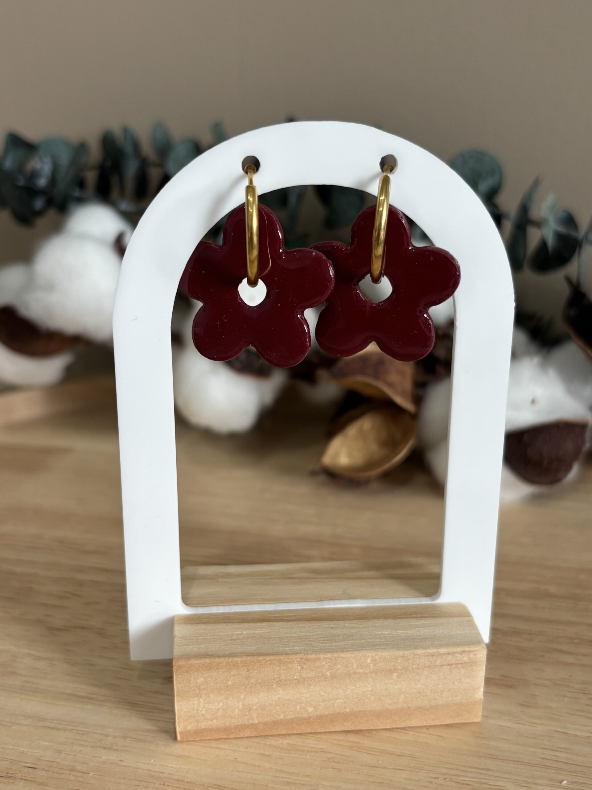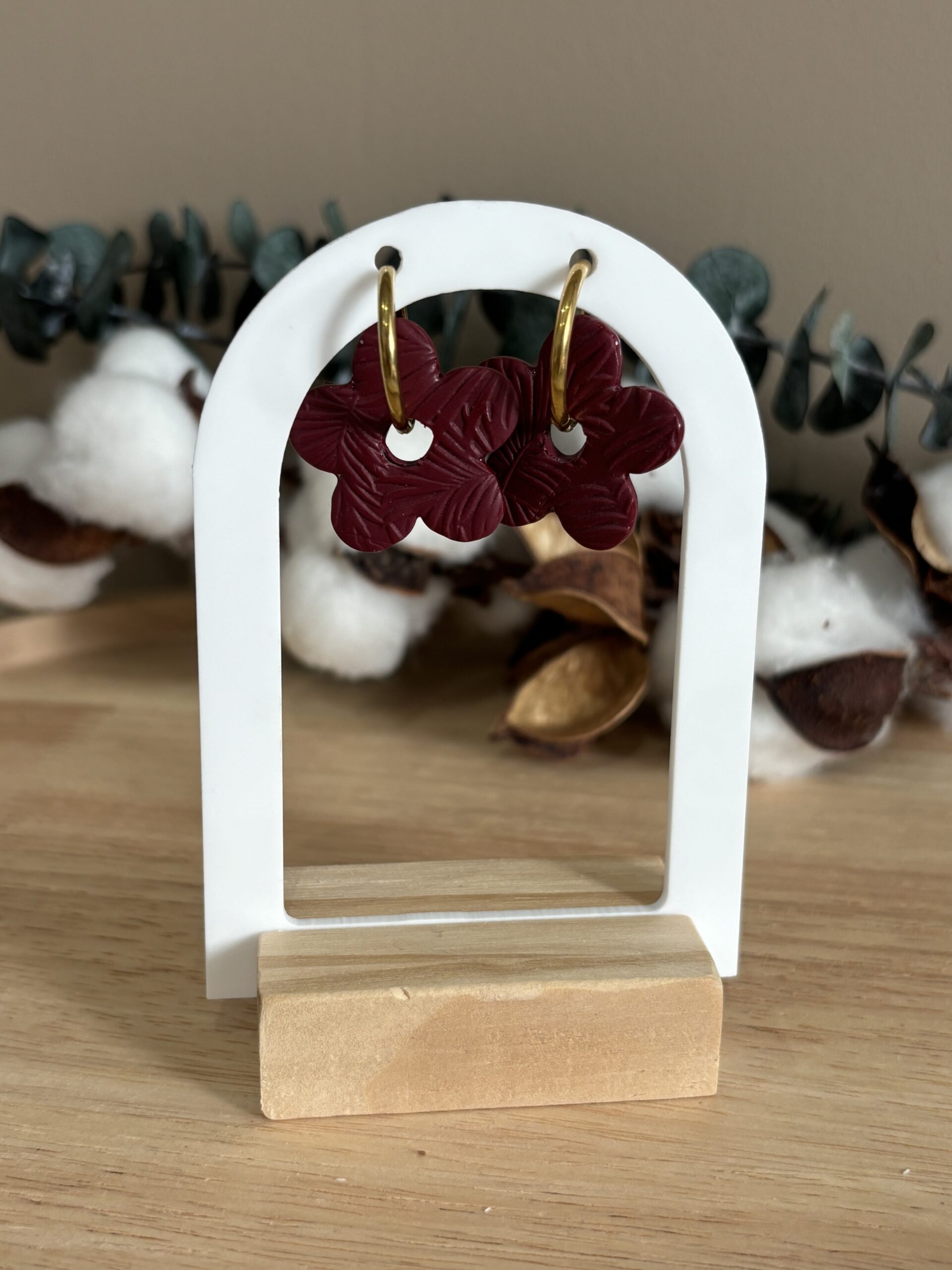 Apportez une touche d’éclat et de fantaisie à vos tenues avec nos boucles d’oreilles pampilles Léya en forme de fleur avec un côté en relief mat et un côté en résine.