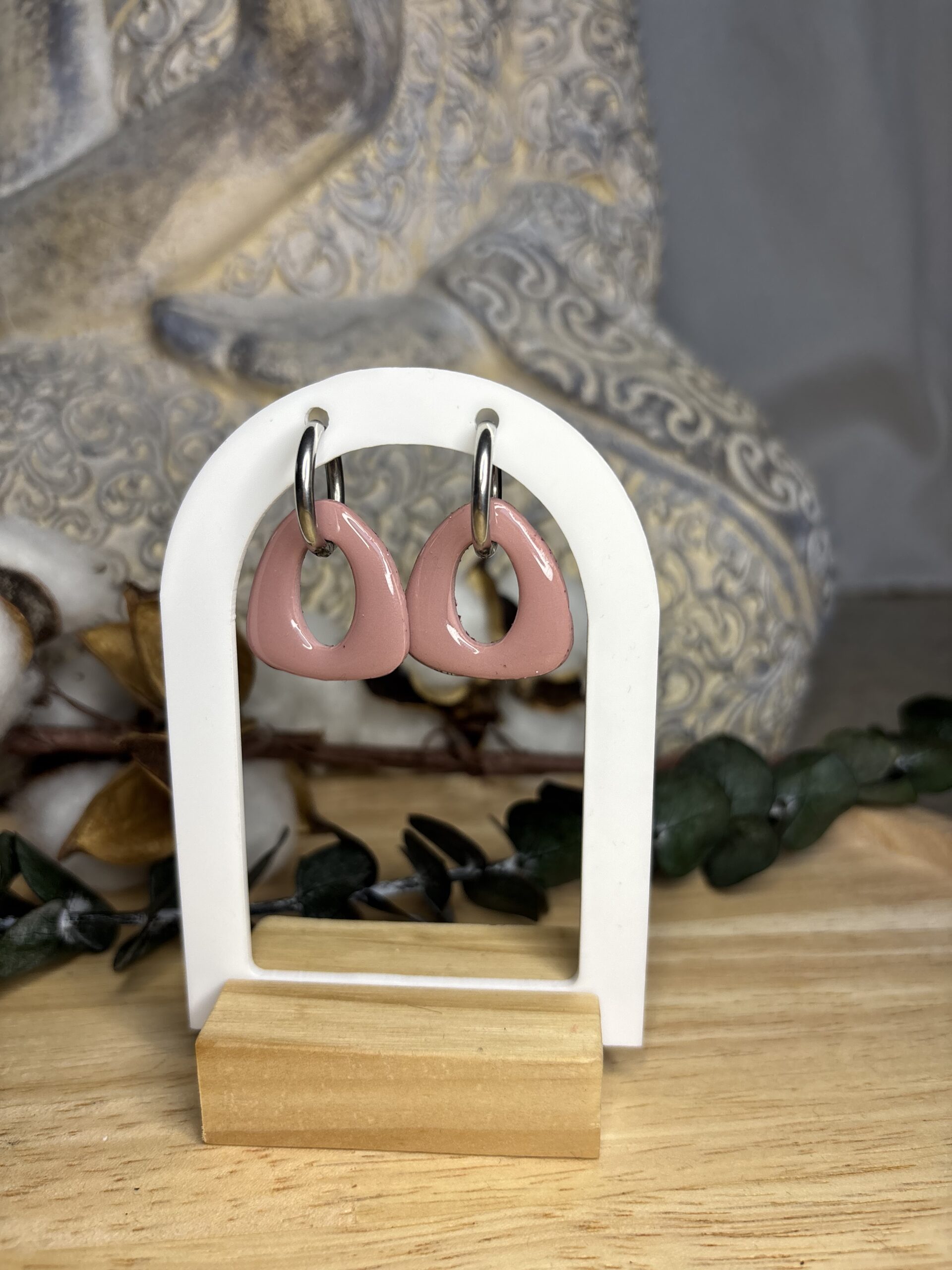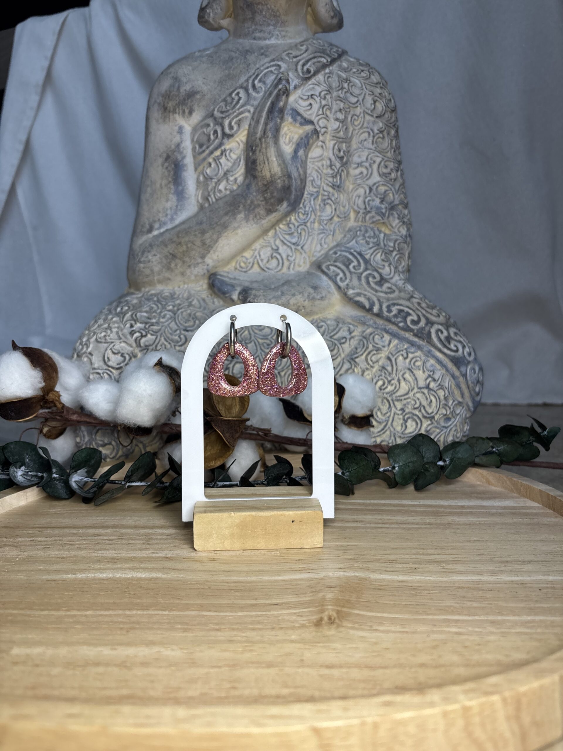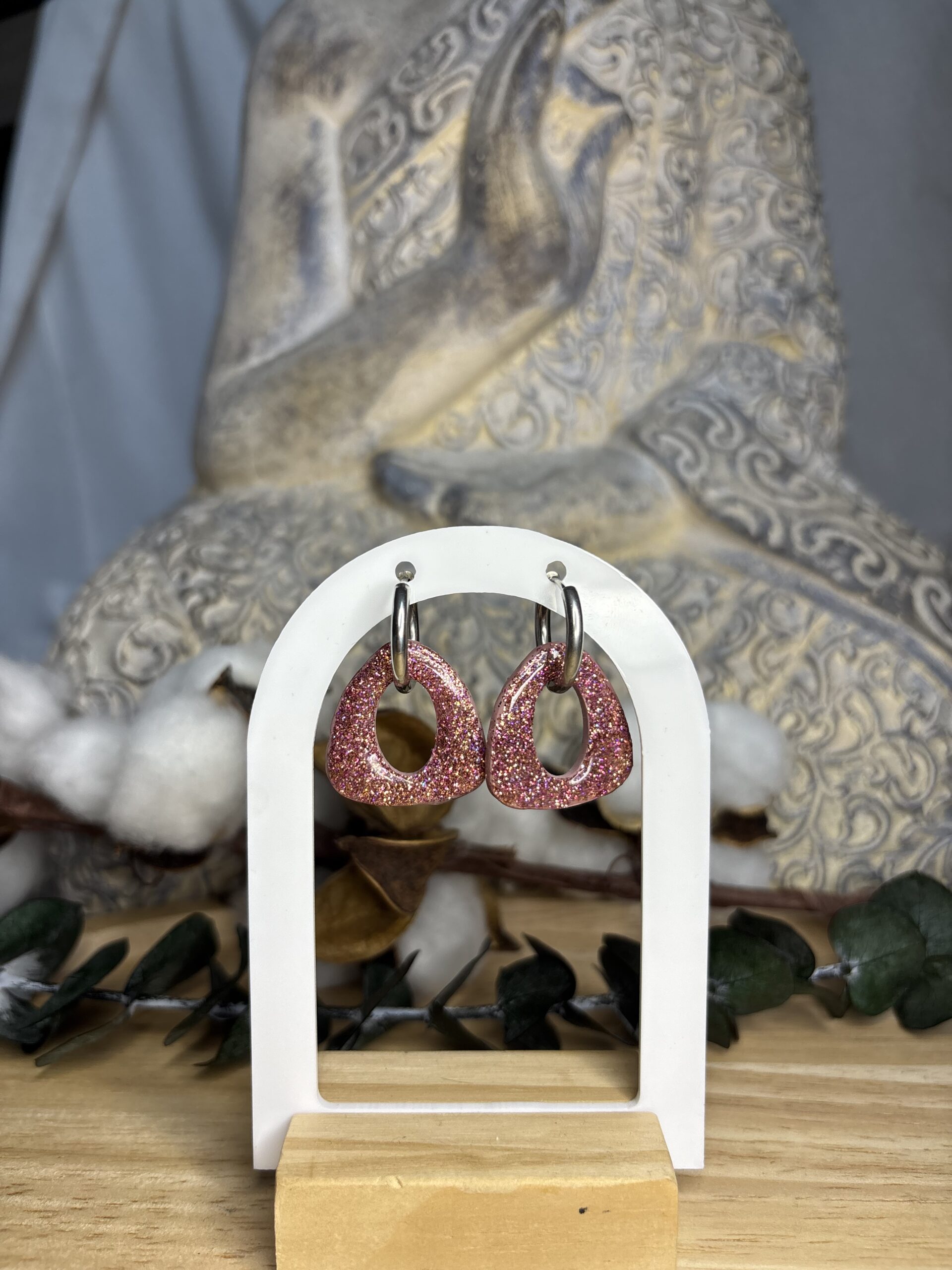 Apportez une touche d’éclat et de fantaisie à vos tenues avec nos boucles d’oreilles pampilles Maïa en forme de triangle réversible, un côté vieux rose et un côté pailleté.