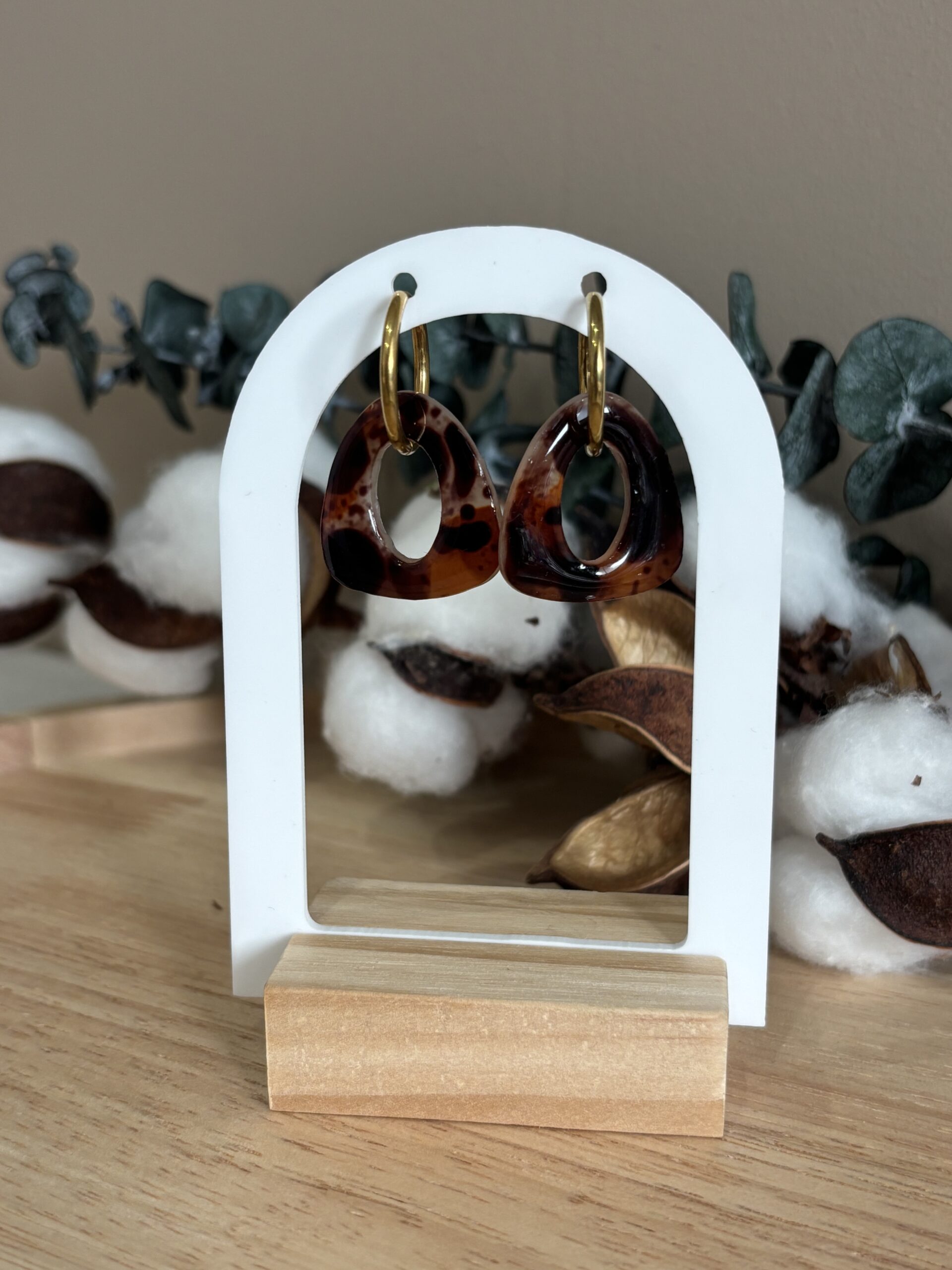 Apportez une touche d’éclat et de fantaisie à vos tenues avec nos boucles d’oreilles pampilles Maïa en forme de triangle effet tortoise.
