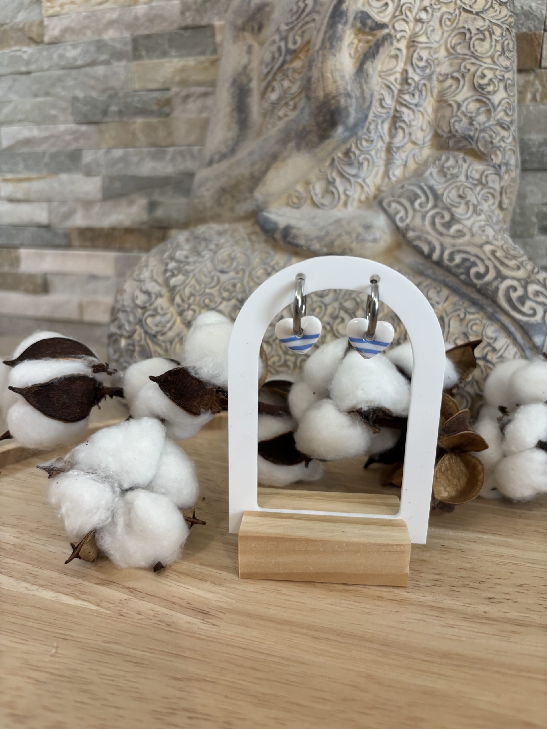 Apportez une touche d’éclat et de fantaisie à vos tenues avec nos boucles d’oreilles pampilles mini cœur marinière.