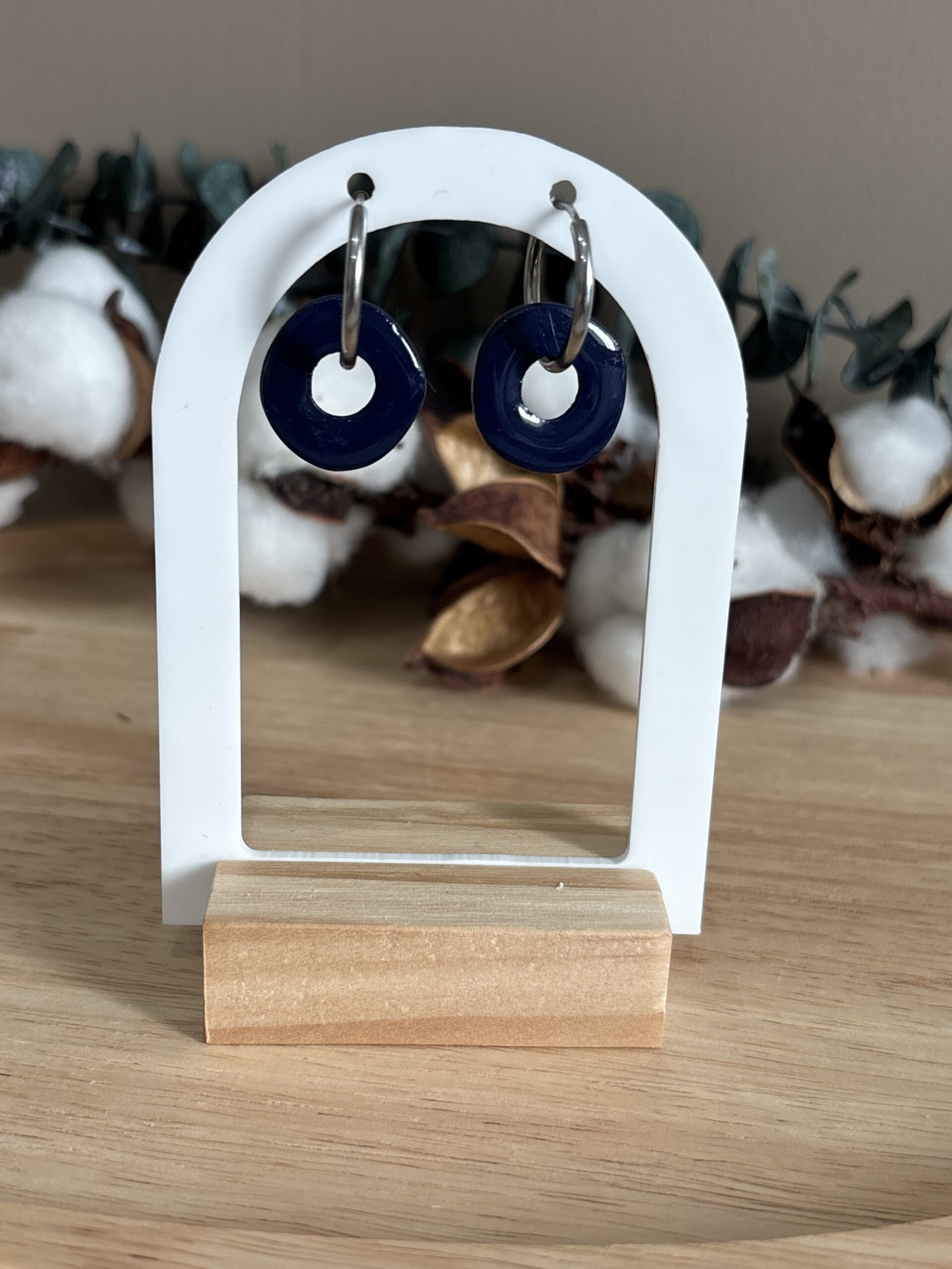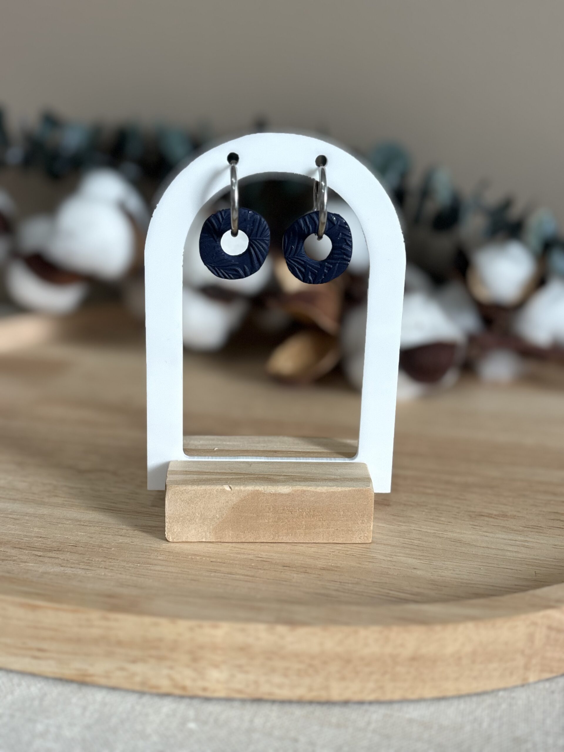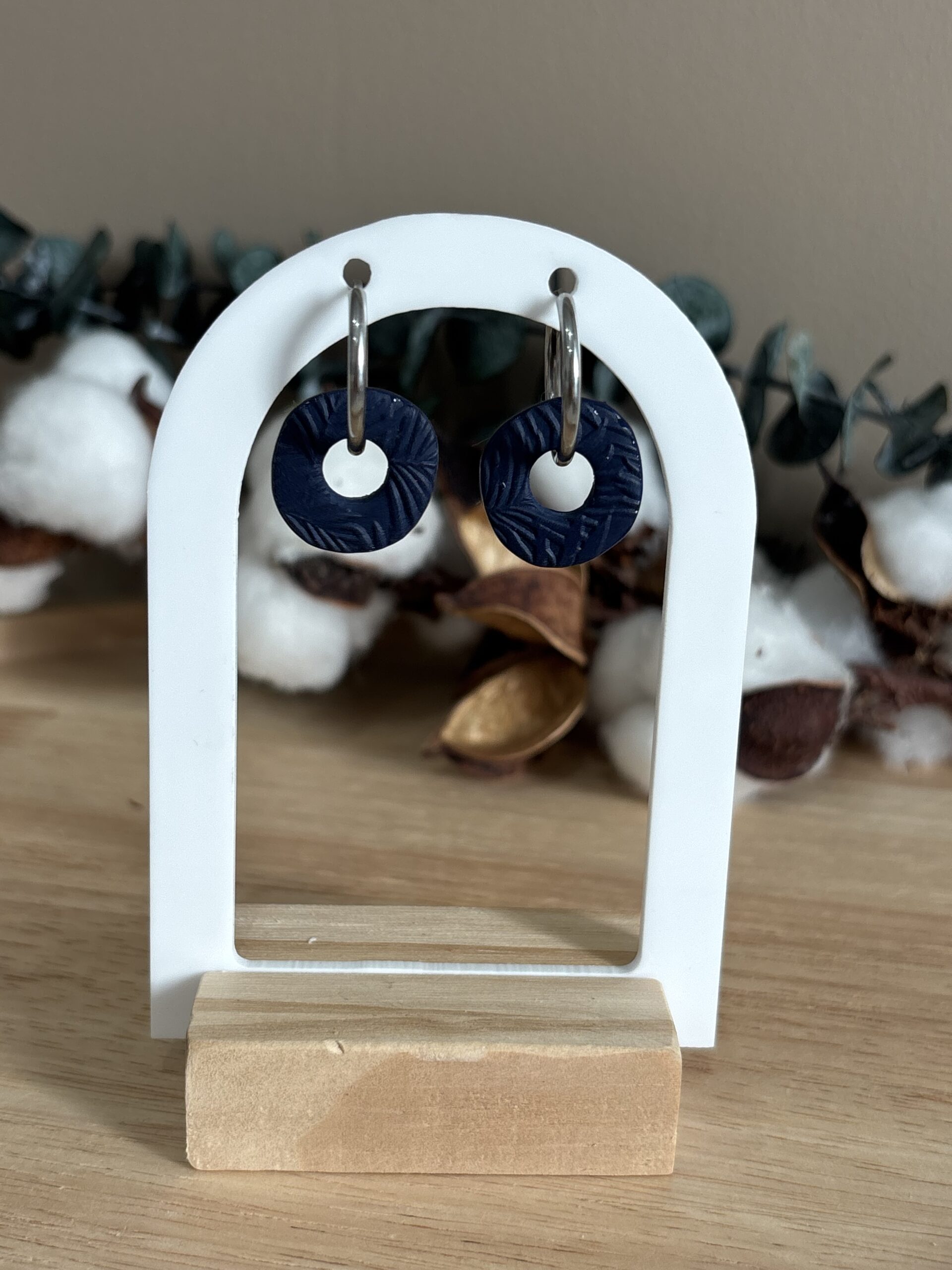 Apportez une touche d’éclat et de fantaisie à vos tenues avec nos boucles d’oreilles pampilles Oréa bleu marine avec un côté en relief mat et un côté en résine.