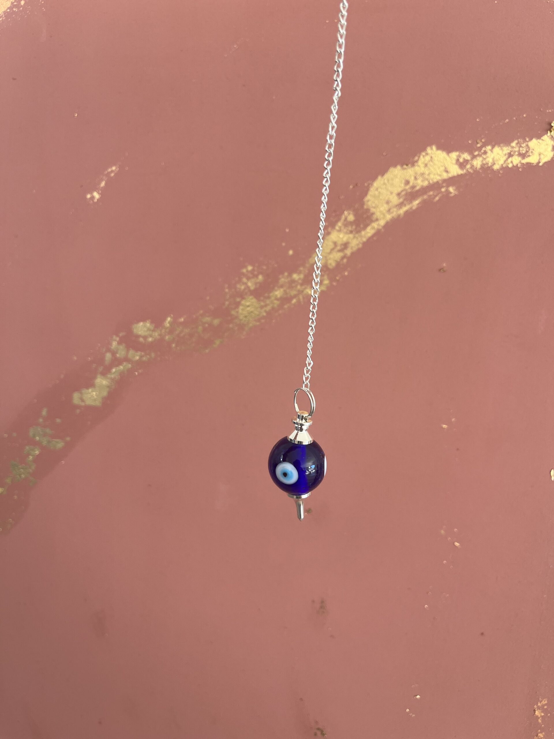 Pendule en verre bleu avec Œil de Nazar et chaine en acier inoxydable argenté